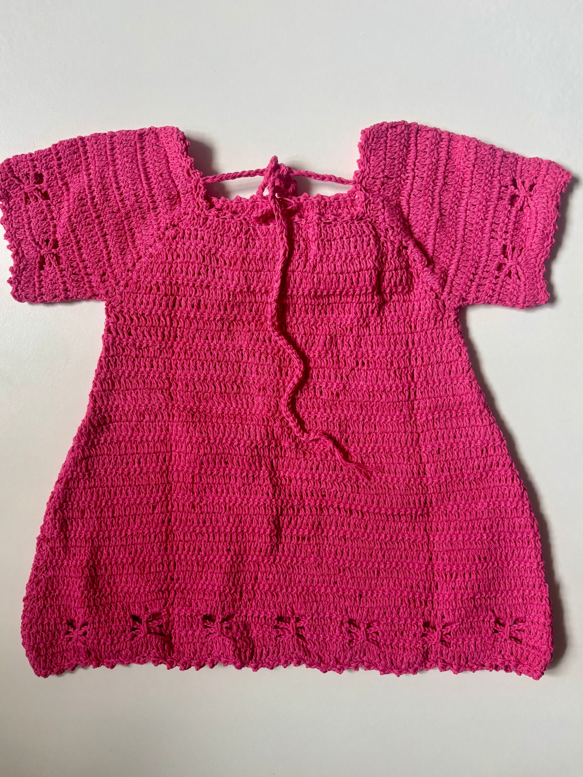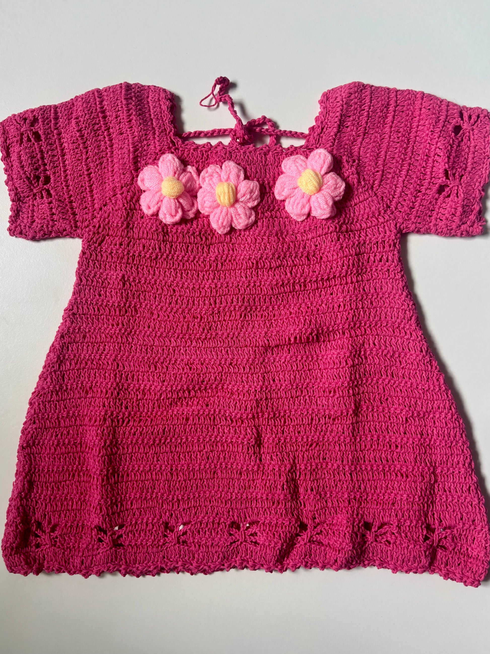 Handmade from soft cotton, this dreamy dress features hand-stitched butterflies around the arms and hem, and delicate flowers along the neckline. A tie at the back lets it grow with your little one — made for dancing, twirling, and shining bright.